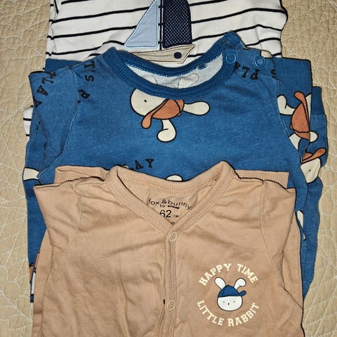 Yöpuku vauvalle koossa 62. Kaikki settinä (5kpl) yhteensä 6€ tai erikseen ostettuna 1-2,5€/kpl.