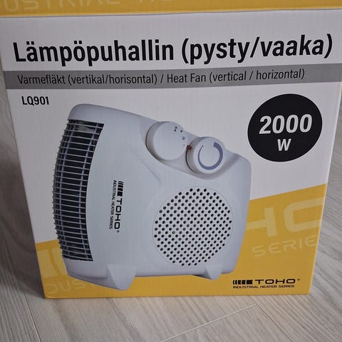 Toimiva lämpöpuhallin. Käytetty kodin remontissa. Rakennusvalot saa kaupan päälle. Nekin toimii.