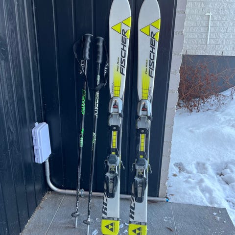 Fischer Race -laskettelusukset, 90 cm pitkät. Toimivat ja ehjät sukset, pohjassa on normaalia käytön jälkeä. Helpot, nopeasti säädettävät siteet.