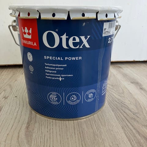 Kuva 1 Otex tartuntapohjamaali valkoinen noin 12 litraa, hinta 120,-.