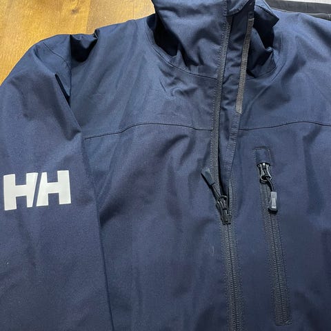 HH takki , joka veneily osastolta hankittu. Normaalia tuulitakkia siis selkeästi jämäkämpi. Kaulus ( sisällä huppu) fleece vuorattu ja nousee ylös hyvin tuulta suojaamaan.