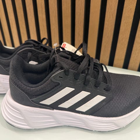Adidas juoksukengät, koko 36,5 (EU). Väri harmaa vaaleanpunaisilla yksityiskohdilla. Päällinen verkkokangasta ja synteettistä materiaalia, nauhakiinnitys. Käytetty vähäisesti vain sisätiloissa. Valkoiset pohjat