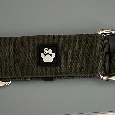 Musta jykevä pukalukkopanta isolle koiralle. Säädettävissä 50-70cm. Heijastin tikkaukset. Nouto Perttulasta.