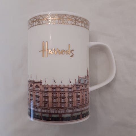 Vähän käytössä olleet vintagehenkiset mukit. Maasälpäposliinia. Mukien reunaa koristaa helmiäisreunus ja vaaleanharmaa kuvio.