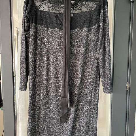 Mamalicious pitsimekko raskaana olevalle, koko L. Sopinut mukavasti S/M kokoiselle odottajalle raskauden eri vaiheissa. Päällä erittäin miellyttävää stretciä, silti tyylikäs. Kunto edelleen juhlava ja siisti vaikka muutamia langanvetoja/kankaan pieniä kuminauhanpäitä noussut esiin. Pesty pesupussissa, ei nukkaa.