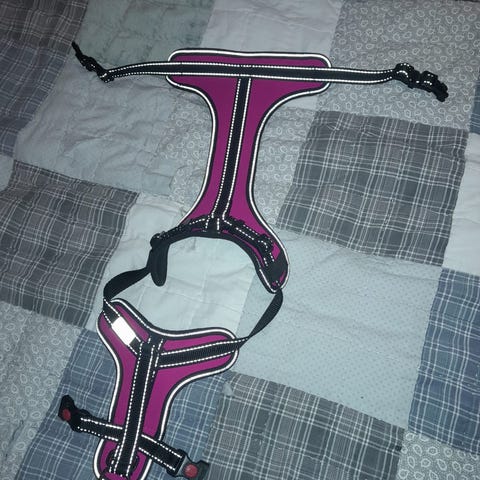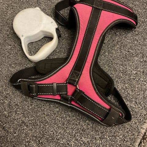 Pinkit Rukka Solid valjaat koossa S. Sekä valjaiden, että metalliosien väri kulunut, mutta valjaat ovat täysin ehjät ja käyttökelpoiset. Hyvät säädöt ja sopivat hyvin esimerkiksi kasvavalle pennulle!