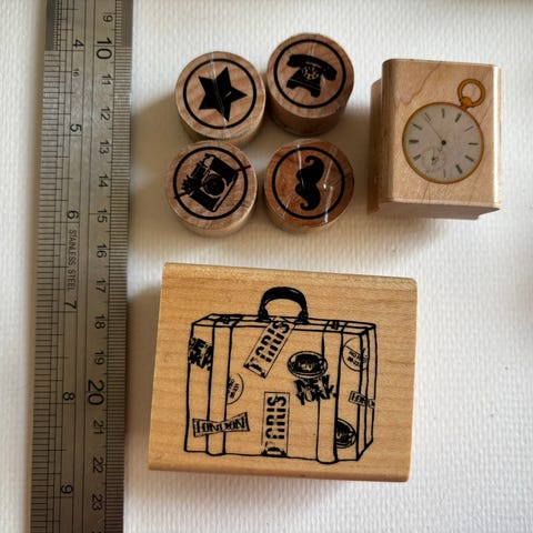 Akryylipalikka, kumileimasin sekä kirjain leimasimet. Ehjiä ja toimivia.