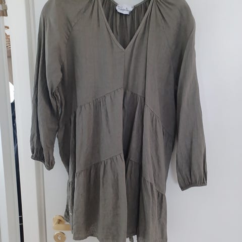Settiin kuuluu hihaton, polviin tai hieman alle ulottuva kotelomekko sekä siihen sopiva pitkähihainen jakku. Ei käytetty, vain pesty. Mitat mekko; kai-kai 54cm, pituus 103 cm/jakku kai-kai 52 cm ja pituus 46 cm.