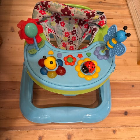 Vauvan kävelytuoli. Puhdistettu ja kankaat juuri pesty.