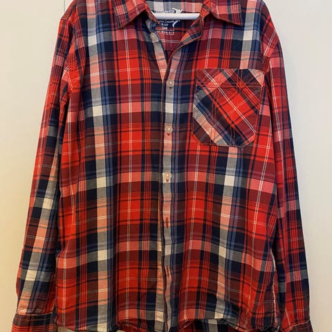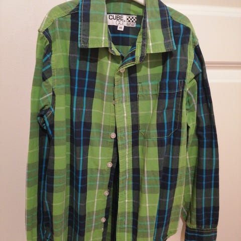 Vaaleansininen kauluspaita koko 140 cm.