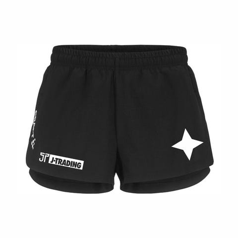 Yksivärinen peli-/treenishortsi ilman taskuja. Malli: Naiset Paino: 130 g/m2 Materiaali: 92 % polyesteri, 8 % elastaani Koot: XS - 2XL