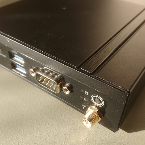 Lanner LEC-2500 teollisuustietokone / sulautettu PC. Ei kiintolevyä, sisällä SATA-liitin ja Compact Flash -korttipaikka.