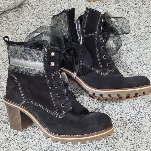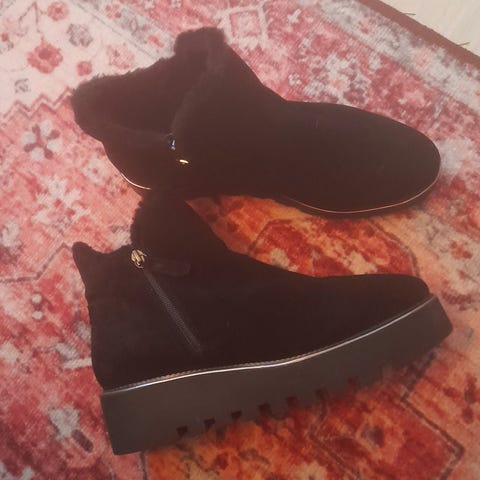 Vain kerran ulkona testatut ja liian suuriksi itselle todetut nahkaiset nilkkurit. Sisällä pehmeä lämmin vuori. Tarkempia mittoja kuvissa. Mielestäni Melko väljä mitoitus.