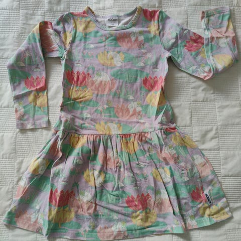Yhden lapsen käyttämä siisti ja ehjä Muumin mekko koossa 116.