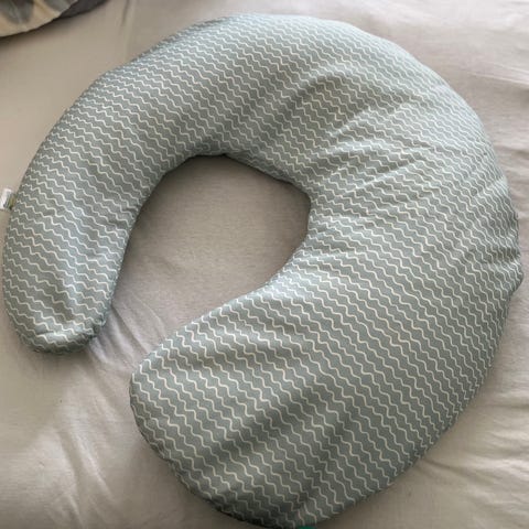 Hyväkuntoinen ja napakka imetystyyny pestävällä päällisellä.