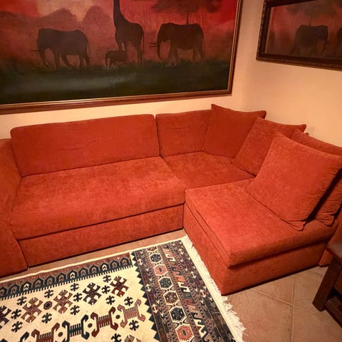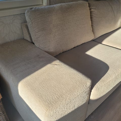 IKEA sohva, ruskea kulmamallinen kangassohva. Sopii olohuoneeseen useamman henkilön istumapaikaksi ja tarjoaa myös rentoutumiseen tilaa. Muotoilu Alberto Meda.