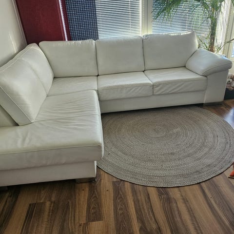 Siisti nahkainen kulmasohva, taloudessa ei ole eläimiä