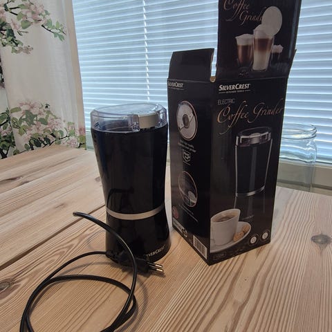 Puukannessa on hieman käytön jälkiä, mutta muuten mylly on täysin toimiva ja lasi ehjä.