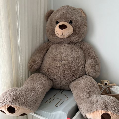 Jätti nalle. Nenässä todella pieni reikä ja takaraivossa saumassa pieni reikä noin 1cm