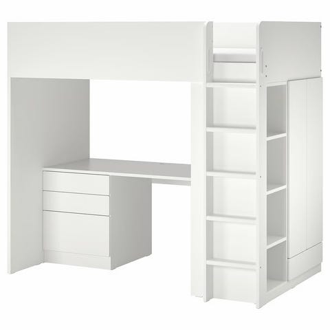 IKEA parvisänky valkoinen. Korkea sänky, jossa tikkaat sivussa ja suojalaidat ylhäällä. Sängyn alla runsaasti avointa tilaa esimerkiksi työpisteelle, säilytykseen tai leikkitilaksi. Soveltuu lapselle tai nuorelle, kun halutaan säästää lattiatilaa huoneessa. Hyvä ja siisti kunto.Patja tule mukaan .Ovh; 499€.Sänky on purettu.