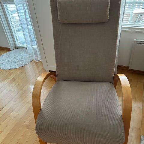 Vihreä verhoiltu nojatuoli, jossa kaareva selkänoja ja käsinojat. Tuolissa on puiset jalat ja kangasverhoilu, jossa hillitty kuviollinen pinta. Sopii olohuoneeseen tai lisäistuimeksi eri tiloihin. Mukaan verhoilukangasta lev. 140cm pituus ei tietoa yli 10 metriä. Kangas ohut ompelu onnituu normaalillakin koneella. Kunto kuvista Runko hyvä Käsinojat kuluneet puhki. Kangas uusi pakka verhoilu kangasta. Yht. 55€