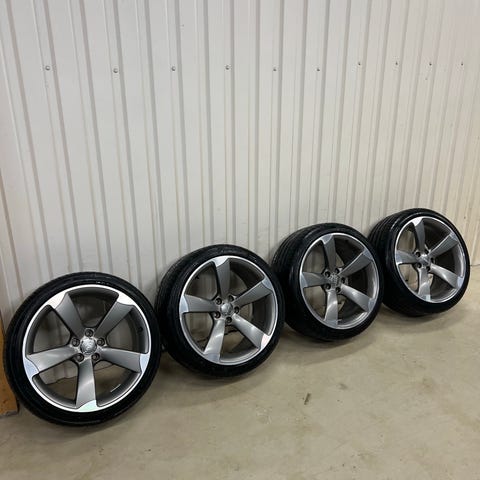 Hyvät ja näyttävät jr 19" vanteet myyntiin kun ei tarvetta itsellä , tasapainotus tarpeen mutta muuten hyvässä kunnossa, pari pientä hiertymää oikeassa taka ja vasemmassa etu vanteessa kumit ovat alle 5000km ajetut pintaa löytyy hyvin ja speksit tais olla 245/35 erikois pultit löytyy myös ollut audi a6 c6 allla ja nyt kesällä oli a5 alla tänään18.2 liikkuu helsinki-vimpeli välillä ja otan mukaan kärryyn eli toimitus riippuen koukkauksesta 30€-50€ vanteille hinta kumeineen 700€