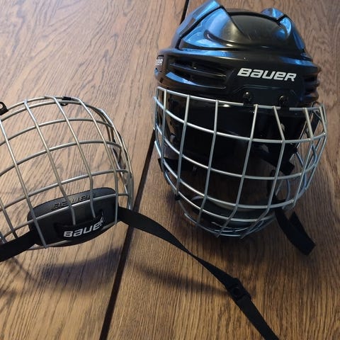 VARATTU! Bauer jääkiekkokypärä ristikolla. Koko: M. Säädettävä (55-60). Väri: Musta. Yhdellä pojalla ollut.