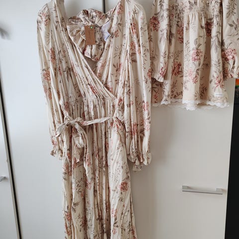 🩷molempien mekkojen hinta:120€+postit, Naisten mekko 90€ ja lasten mekko 30€