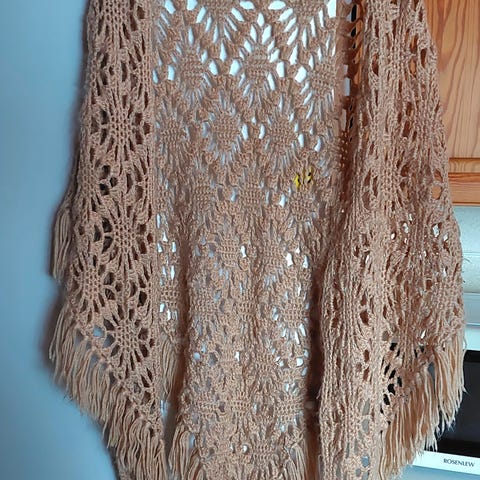 Ompelijalta ostettu hartialiina/keeppi, joka tehty vanhoista pitseistä ja värjätty valmiina. Väri on upea, pirteä oranssi.
