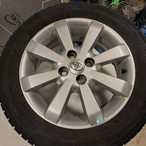 Toyota Yaris Hakkapeliitta R 3 kitkarenkaat alkuperäisillä Toyotan vanteilla ja painetunnistimilla