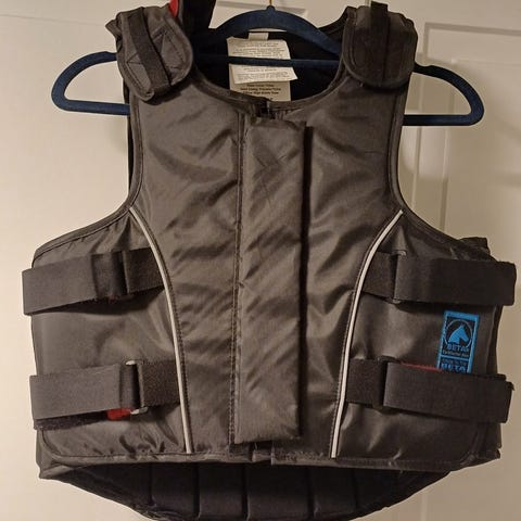 BETA 2018 -hyväksytty ratsastuksen turvaliivi. Musta liivi, jossa etukiinnitys tarranauhoilla ja soljilla sekä sivuilla säädettävät hihnat istuvuuden säätöön. Selkäosa on yhtenäinen ja liivissä on pehmustetut olkaimet. Soveltuu ratsastukseen ja hevosharrastuksiin, joissa tarvitaan vartalon suojaa iskuja vastaan.