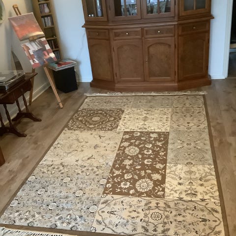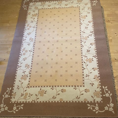 Miellyttävän pehmeä nukka matto kauniin kukkakuvioinen joka tuo näyttävyyttä huoneeseen. Pohja juuttia keinokuitu.
