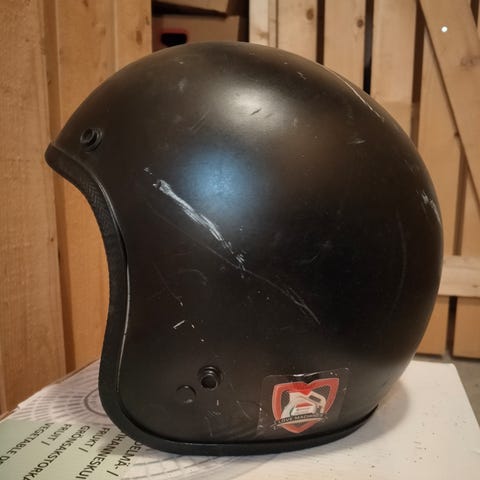 Shoei avokypärä moottoripyöräkäyttöön. Koko XL, päänympärys 61–62 cm. Väriltään harmaa, jossa raidallinen ja ruutukuvioitu viimeistely. Kypärässä on kiinteä visiiri ja leukahihna. Sisäpuolella pehmusteet ja valmistajan merkinnät. Soveltuu moottoripyöräilyyn tai muuhun vastaavaan käyttöön, jossa vaaditaan avomallista kypärää.