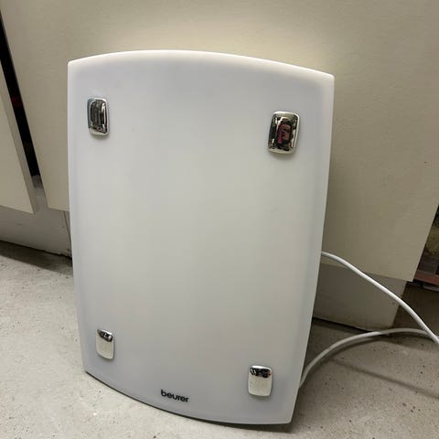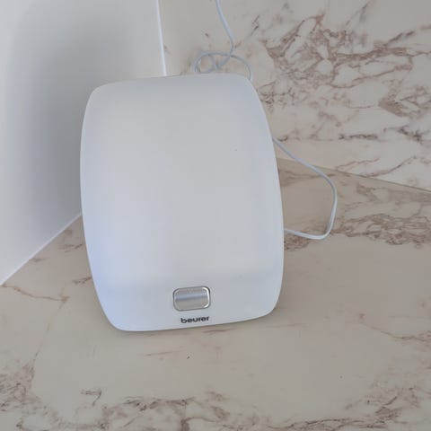 Uudenveroinen Beurer TL 20 kirkasvalolamppu. Toimii pyst- ja vaaka-asennossa näppärän tukijalan ansiosta.