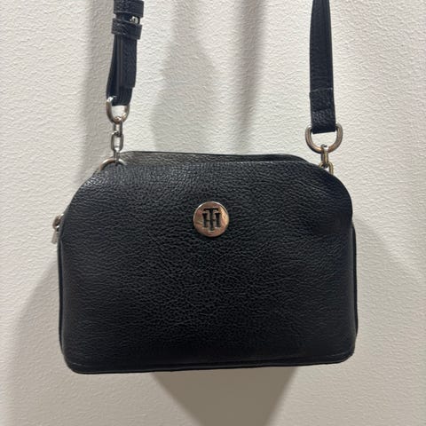 Tommy Hilfiger olkalaukku naisille. Materiaalina tekonahka, väri musta. Laukussa on säädettävä olkahihna, jossa Tommy Hilfiger -logoteksti. Laukku suljetaan vetoketjulla, ja sisäosa on yksiosainen ja ulkopuolella pieni tasku nepparilla.