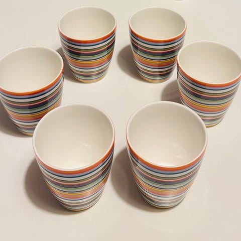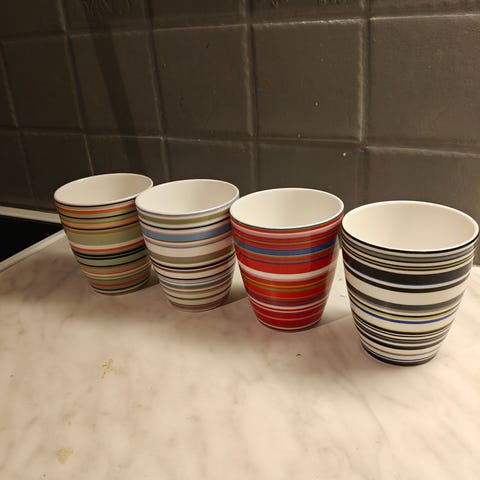 Neljä kappaletta Arabian Origo-mukia myytävänä. Myydään astiapaljouden takia pois. En myy erikseen.