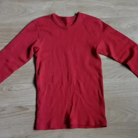 Ruskovillakerrasto kultaiselta 80-luvulta. Paidan hihoissa muutama pieni reikä, jotka parsittu umpeen, housut lähes käyttämättömät.