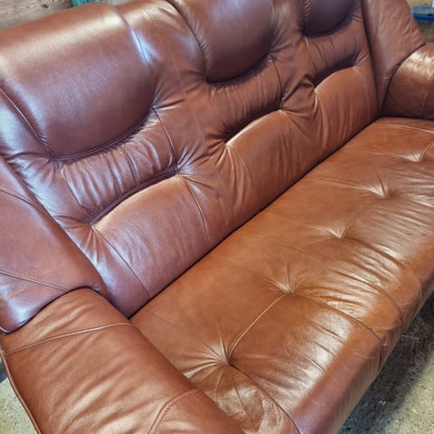 Myydään vaalean ruskea nahkasohva, siistikuntoinen. Lisäkuvia saa pyytämällä. Mitat 200cmx80x85cm.