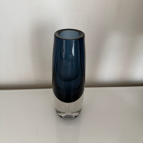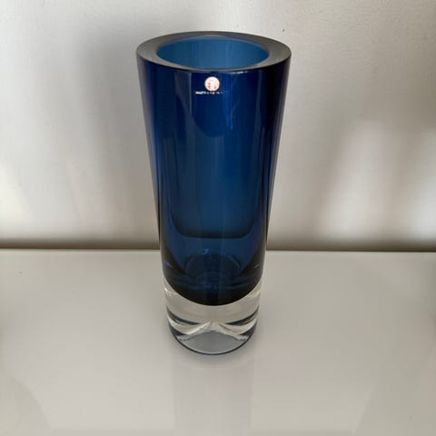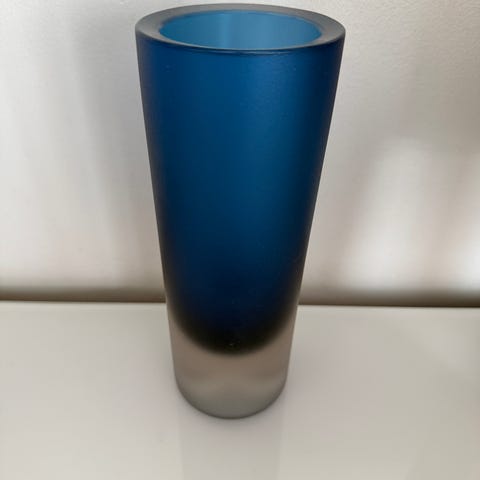 Iittala Lappi 3655 Maljakko 15 cm, Erkki Vesanto, ei signeerattu. Erkki Vesannon Iittalalle suunnittelema Lappi 3655 Maljakko mattaa sinistä ja kirkasta lasia. Lappi sarjan maljakot ovat kauniita, linjakkaita ja yksinkertaisen tyylikkäitä.