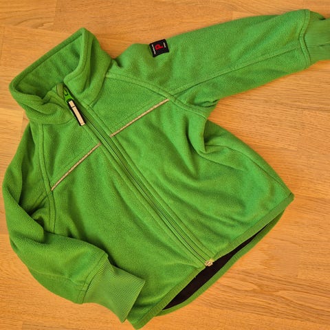 Polarn O. Pyret fleece-takki lapselle. Koko 86/92 cm, unisex-malli. Takki on vihreää fleece-materiaalia, jossa on vetoketju edessä ja korkea kaulus. Sopii käytettäväksi välikerroksena tai kevyenä takkina viileämpiin päiviin.
