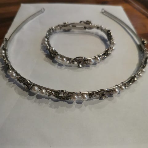 Kaunis hopeanvärinen tiara, korkeus 5cm. Kulkeutuu Turkuun omien menojen mukaan.