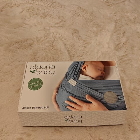 Aldoria Baby Bamboo Soft kantoliina vastasyntyneille ja vauvoille, 0-6 kk (-1v). Materiaali 100% bambu. Meillä oli ainut käytetty kantoliina, oli ihanan kevyt ja pehmeä. Alkuperäinen pakkaus mukaan.