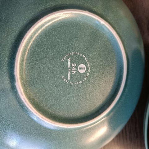Arabia 24h -sarjan pastalautasia 2 kpl, halkaisija noin 26 cm. Vihreä, lasitettu keraaminen lautanen. Lautanen soveltuu esimerkiksi ruoka- tai pastalautaseksi. Astia on uunin- ja mikronkestävä sekä konepesun kestävä valmistajan merkintöjen mukaan. Heikki Orvolan suunnittelema