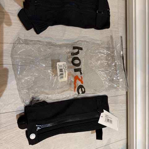 Horze ratsastuschapsit. Väri musta. Säärystimissä on vetoketju ja nepparikiinnitys, sekä joustavat paneelit istuvuuden parantamiseksi. Sopivat käytettäväksi ratsastuskenkien kanssa. Lasten koko noin 8-10v, käytetty pari kertaa, 5e. Koko xs samoin käytetty pari kertaa, 5e. Uudet koko s, 10e.