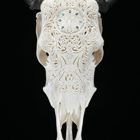 EI VÄHIMMÄISHINTAA - Aito harmaa kaiverrettu vuohen kallo räätälöidyllä