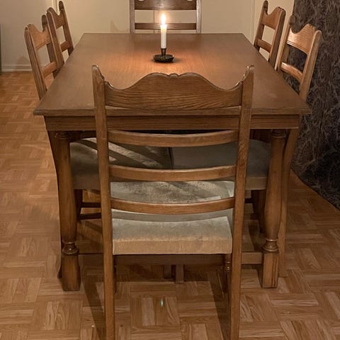 Tuoleja 8 joista 2 suurempaa.
