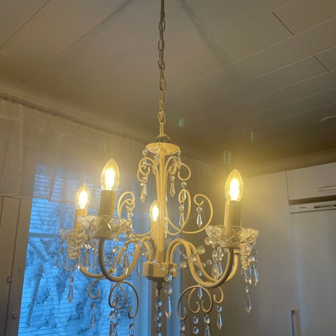 Myydään kuvan kattovalaisin. Polttimo toimii ja kuuluu hintaan. Halkaisija noin 21 cm, itse ”kruunuosuuden” korkeus noin 30 cm.