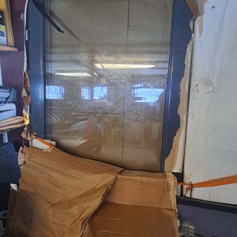 Tiivin alumiinipintainen terassin ovilehti. 890*2200. Lasin korkeus 1450. Pitkäsulkija, tuulijarru ja saranoiden naaras kappaleet paikoillaan. Ruskea ulos ja valkoinen sisään.