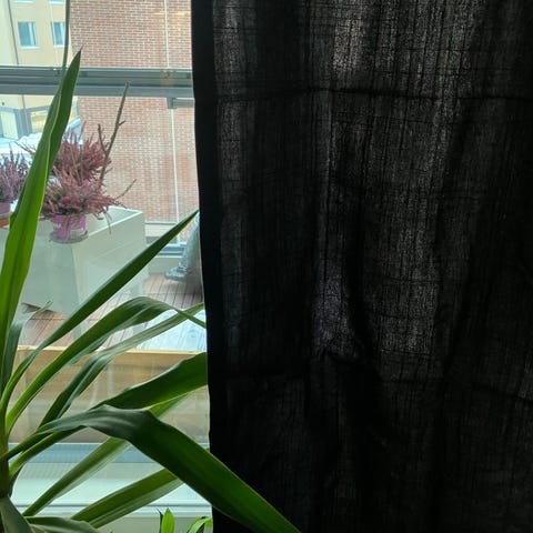 Hemtexin beige sivuverho täyttä puuvillaa (näyttää pellavaiselta)