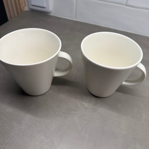Arabian Koko-tuotesagjasta vaaleanpunainen muki, ehjä mutta mukin pohjassa lusikasta himmeitä harmaita jälkiä.
